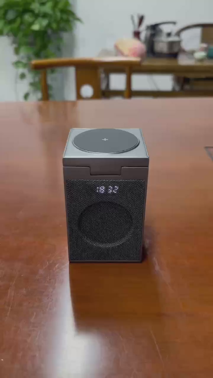 CUBY | 3-in-1 Wireless Charging Bluetooth Speaker with Alarm Clock & Magnetic Stand
